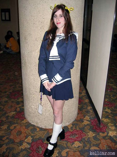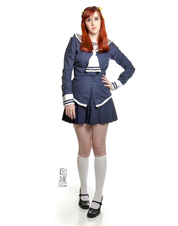 I also had intended to get double use out of this costume and reuse the top for an Arisa Uotani uniform — my grandmother had given me the longer pleated navy blue skirt that matched my topic perfectly. So I had it all ready to go, I just never got the wig or did anything else with it. This was kind of the tail-end of my anime/gaming era of costuming so that’s probably why.