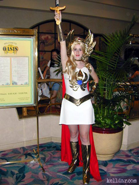 I’ve reworn this a few times since then, making little upgrades – mostly to the boots – each time. It’s last appearance was for Comic Con 2004. In 2013 I made a Glimmer costume for a massive He-Man/She-Ra group for Dragoncon, and I’ve been playing around with the idea of making a new She-Ra costume sometime soon…