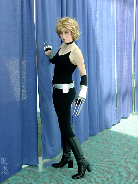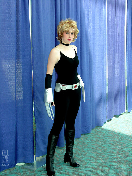 So in my best Tim Gunn voice I told my husband we were going to make it work. The white backdrop shots above are my “substitute suit” – a pair of black leggings and a black tanktop. Hey, the original suit wasn’t accurate either, so who cares if it’s even less accurate as long as it gives the same spirit as the original? LOL I’m just glad to finally have photos of this. I’m probably going to throw the belt away (it’s just vinyl and duct tape!), toss the wig, buckle and belt boxes in my random bits bin to be used for something else and keep the claws cuz dad made them. But AoA Shadowcat is officially retired and gone, but at least she got catalogued first, even if it wasn’t the total original suit!