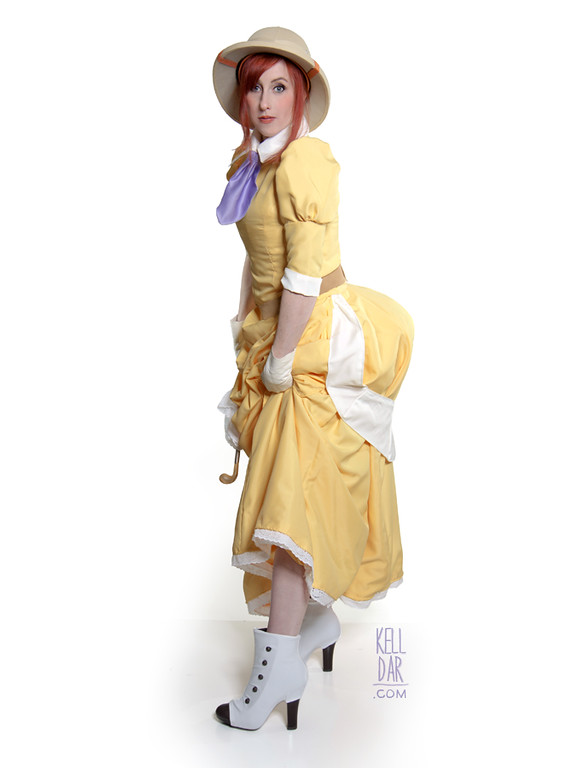This is such a fun costume to wear! When I got it for a Halloween party in 2013, I wore it with a new petticoat and fixed some bustle issues. As of 2025, as noted above, both the hat and boots have fallen apart. I think the boots are fixable, but I’m still pretty mad about the hat. I’d like to get this wearable again because it’s always been one of my favs.