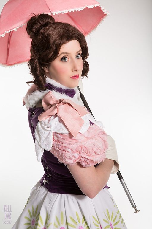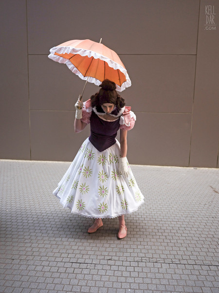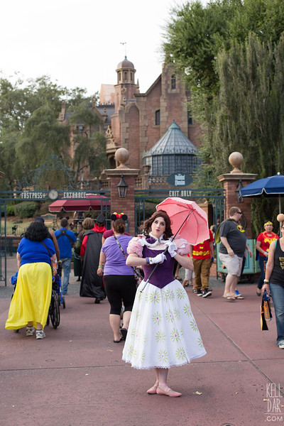 I wore this for about 5 hours at Dragon Con 2016 – probably the longest time I’ve ever worn one costume continuously at Dragon Con, LOL. It was truly a trial by fire and I realized there was a quite a bit I needed to go back and fix/redo. So before MNSSHP about a month later, I restyled the wig, tweaked the closure on the capelet, and made the new parasol.
