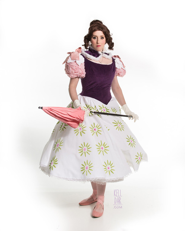 The parasol was just my Jane parasol, it wasn’t the right shape but close to the right colour, so in an effort to save time and money I used it — but I made a new one after Dcon, see below! Gloves were also my Jane gloves.