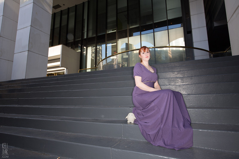 Final Thoughts: I need to revisit this before I wear it again – I made it much too long to be comfortable (I guess I lengthened it TOO much…) and I’d like to replace the trim with something not so bulky. Otherwise it was a fantastic, easy costume.