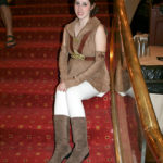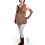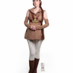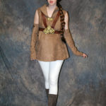 I bought the pants online, and my boots I got on ebay. My leather straps I cut from a large leather piece and dyed. It velcroes closed in the front. The “pregnancy pad” was a pillow I sewed straps onto, plus I made a tube of spandex to wear over it that helps round the edges a bit more.