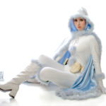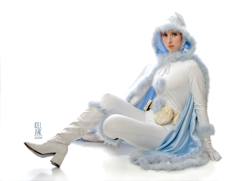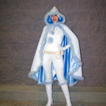 This was a white spandex bodysuit I already had on hand – had bought it for another costume and decided not to use it, and it was perfect for this. I added a hood made out of white spandex to it.