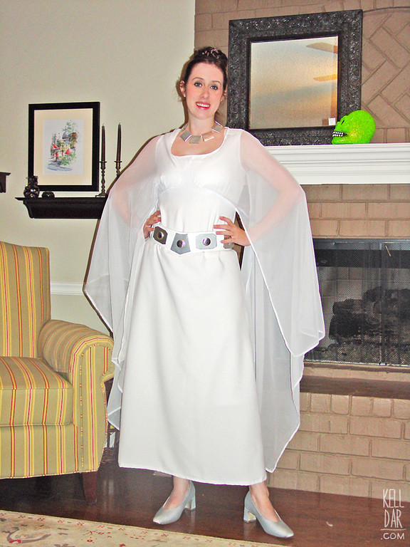 The shoes were heels I already had painted silver (and not well LOL), and my belt was my regular Leia belt. The necklace was made of craft foam squares covered in silver foil.