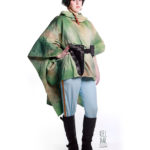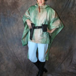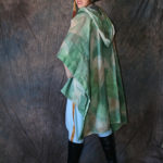 The poncho is actually my second, my first one that I was really happy with I ruined about a week before the con. Had to start all over! (long story) But I got the second one finished and got enough dye on it that it was wearable. I’m still not 100% happy with the colour – I plan on re-dyeing it at a later date. I just laid the poncho down flat and had a couple of small containers with different greens and tan dyes in them, and sponged them on.
