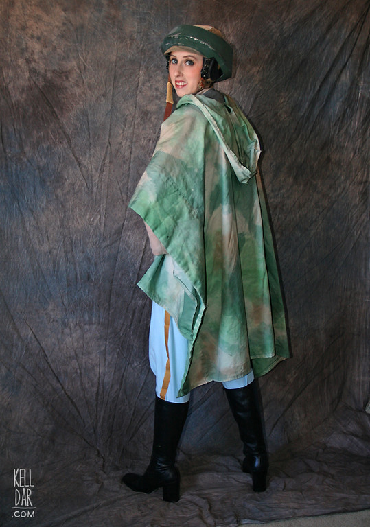 Everything underneath the poncho is my rebel uniform from 2005 – except I made new pants. I never liked how tight and stiff my 2005 pants were, so I made new ones out of a softer knit material and they fit muccch better now. Also added stirrups to the bottom to keep them in the boots correctly. (I know I used a pattern for these pants but no clue what!) I did pull the ribbon stripe off the 2005 pants and reuse it on my 2007 pants, I still liked the colour of that and didn’t want to have to find something new.