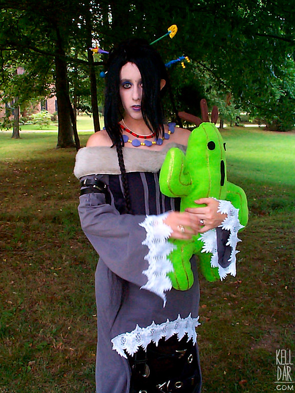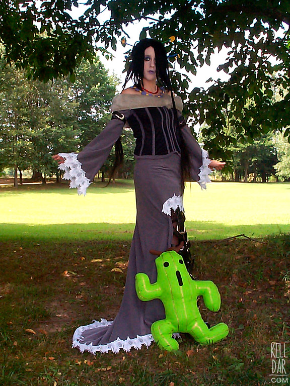 I only wore this three times – once for Animazement, once for Otakon to match my friend’s Yuna and once for a photoshoot. Since 2002 it has been living in pieces in various bins. The cactaur has been lost (Maaaaybe somewhere in my parents attic?). I would love love love to get it all out, repair it, clean it up and shoot it on the white backdrop but I have no idea if it’ll ever be possible. We’ll see.